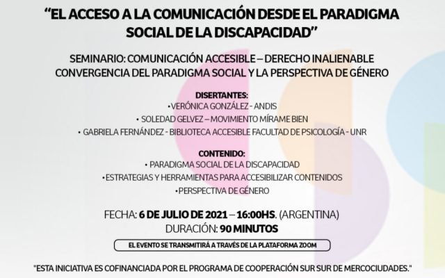 El Grupo de Discapacidad e Inclusión de Mercociudades (GDI) invita a comunicadores/as, periodistas, educadores/as, diseñadores/as y generadores/as de información en general, a participar del Seminario “Comunicación accesible. [...]