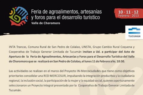 31/01/2013 Del 10 al 12 de febrero se llevará a cabo en la localidad de San Pedro de Colalao, (Tucumán – Argentina) la Feria de [...]