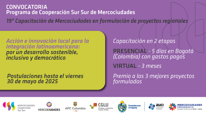 En el día de ayer el Programa de Cooperación Sur Sur de Mercociudades lanzó las convocatorias para participar de la capacitación en formulación de proyectos [...]